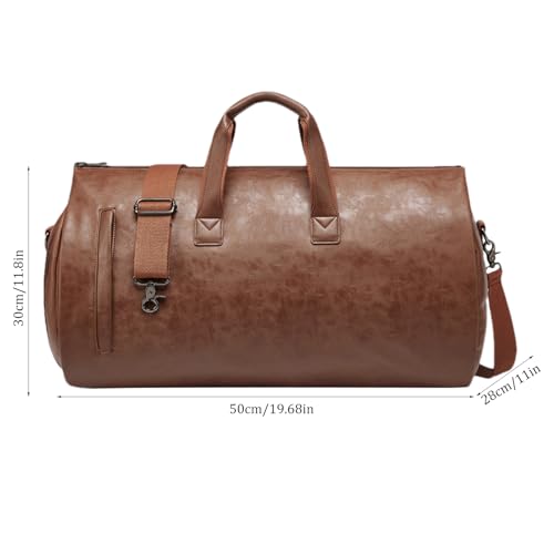 • Multi-Functional Design: suit duffel bag Crafted from PU leather, this garment duffel bag provides spacious space to keep your suits and gowns neat and tidy; use it as a hand bag, shoulder bag, or casual bag for wide