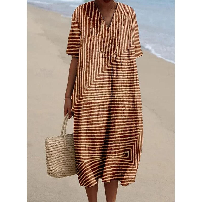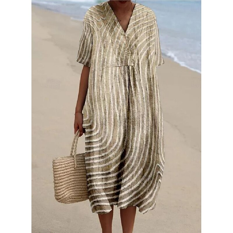 More information about Women's Midi Dress Sundress A Line Dress Vacation Casual Beach linen like Going out Loose Fit Short Sleeve V Neck claret Orange off-white Dark Gray