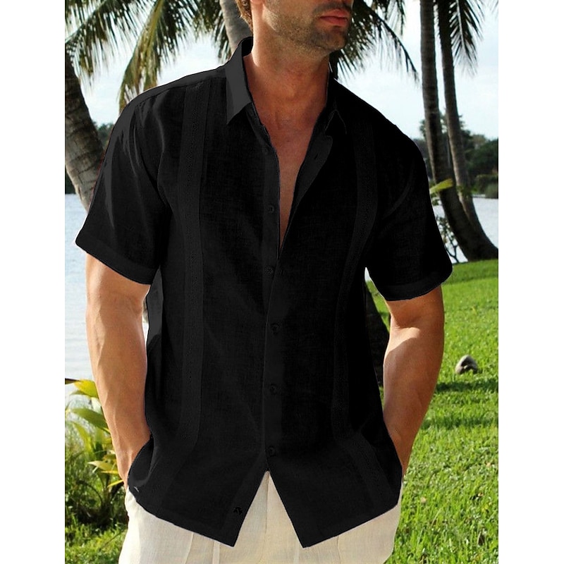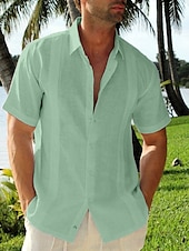 HOT ! Men's Shirt Linen Shirt Cotton Linen Shirt White Cotton Shirt Guayabera Shirt Summer Shirt Plain Vacation Casual Black White Blue Green Short Sleeve Lapel Summer Clothing Apparel