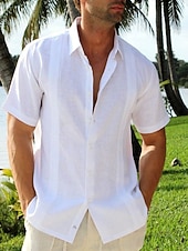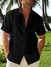 More information about Men's Shirt Linen Shirt Cotton Linen Shirt White Cotton Shirt Guayabera Shirt Summer Shirt Plain Vacation Casual Black White Blue Green Short Sleeve Lapel Summer Clothing Apparel