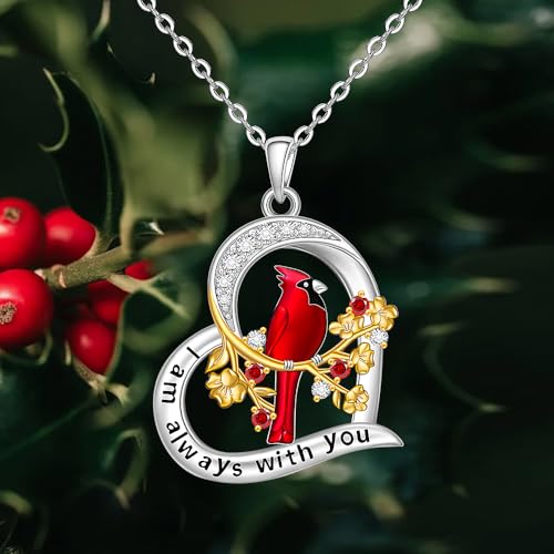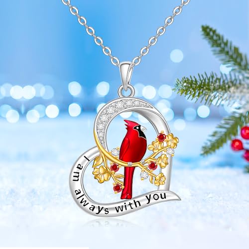 HOT ! Fenthring Cardinal Necklace Sterling Silver Heart Red Cardinal Necklaces for Women Pendant Memorial Sympathy Bird Charms Mothers Day Christmas Gifts
