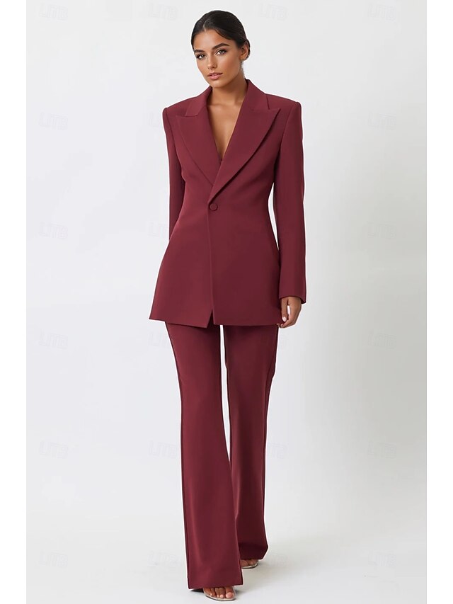 More information about Women's 2 Pieces Suits Formal Wedding Guest Elegant Minimalist Casual Long Sleeve Floor Length Peak Lapel Single Breasted