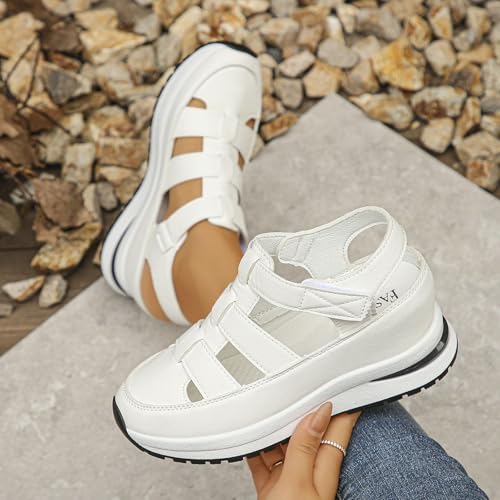 Women's Hollow Out Breathable Platform Wedge Sandals Sneakers Soft Thick Sole Closed Toe Ankle Buckle Strap Sandals Comfortable Lightweight Casual Walking Athletic Shoes Outdoor Going Out Footwear 6