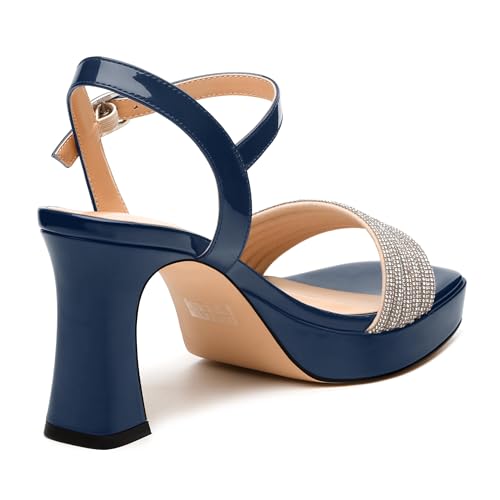 More information about Women's Square Toe Heeled Sandals - Chunky Platform with Rhinestone Strap, Solid Color Ankle Strap Sandals for Work, Parties & Daily Wear