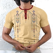 More information about Men's Tribal T shirt Short Sleeve 3D Print Ethnic Casual Vacation Daily Holiday Summer Spring Khaki Henley Henley T-Shirt