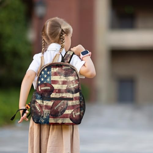 HOT ! Retro American Football Flag Print Kids Backpack for Boys Girls, Waterproof Lightweight Toddler School Bag with Chest Strap, Small Travel Book Bag Preschool Kindergarten Backpack