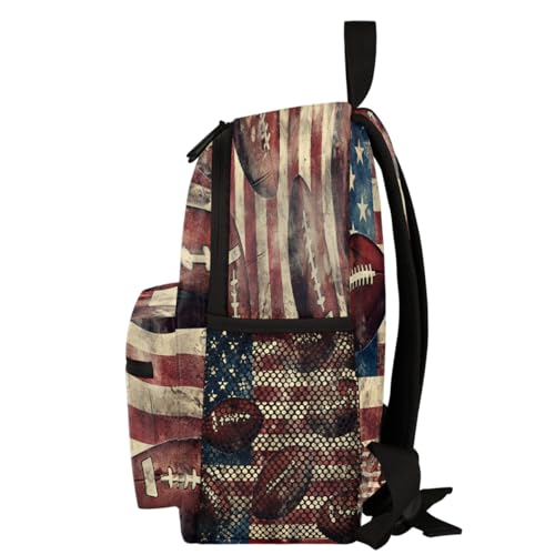 Retro American Football Flag Print Kids Backpack for Boys Girls, Waterproof Lightweight Toddler School Bag with Chest Strap, Small Travel Book Bag Preschool Kindergarten Backpack 6