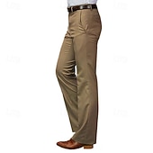 More information about Men's Dress Pants Trousers Chinos Buttons Pocket Plain Comfort Formal Party Work Fashion Classic Style Dark Khaki Black Micro-elastic