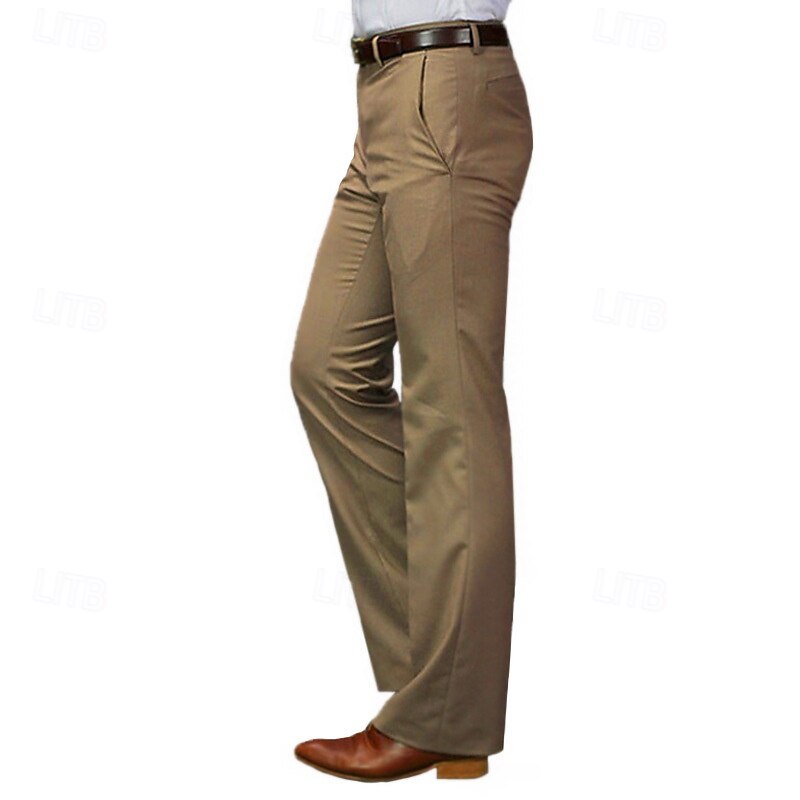 Men's Dress Pants Trousers Chinos Buttons Pocket Plain Comfort Formal Party Work Fashion Classic Style Dark Khaki Black Micro-elastic 14