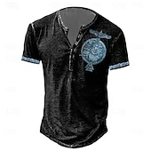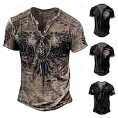 More information about Men's T shirt Tee Henley Shirt Graphic Skull Eagle Henley Black-White Black / Gray Black Blue Brown Street Casual Short Sleeve Button-Down Print Clothing Apparel Stylish Vintage Basic Classic