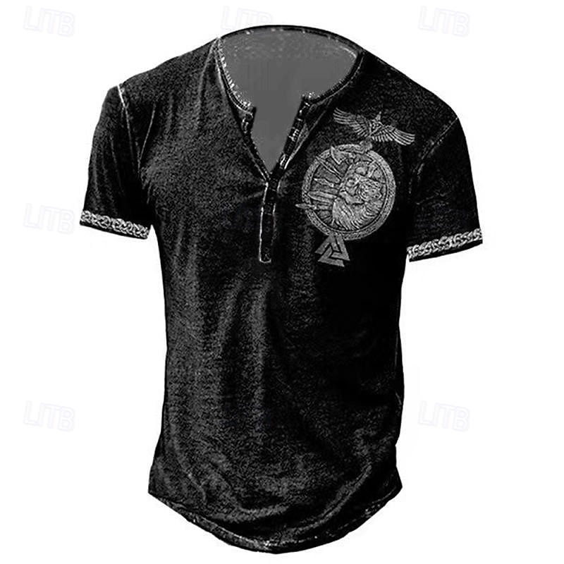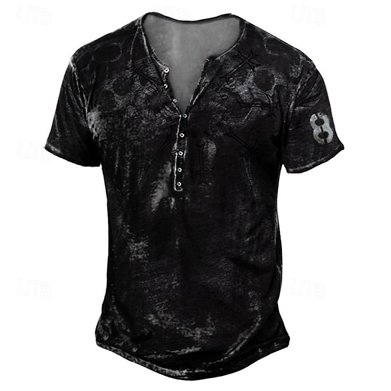 Men's T shirt Tee Henley Shirt Graphic Skull Eagle Henley Black-White Black / Gray Black Blue Brown Street Casual Short Sleeve Button-Down Print Clothing Apparel Stylish Vintage Basic Classic 15