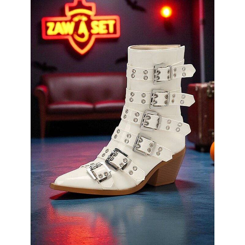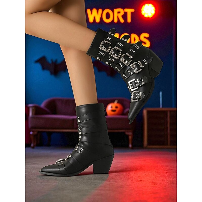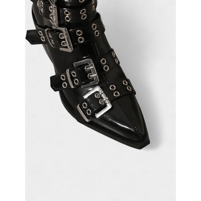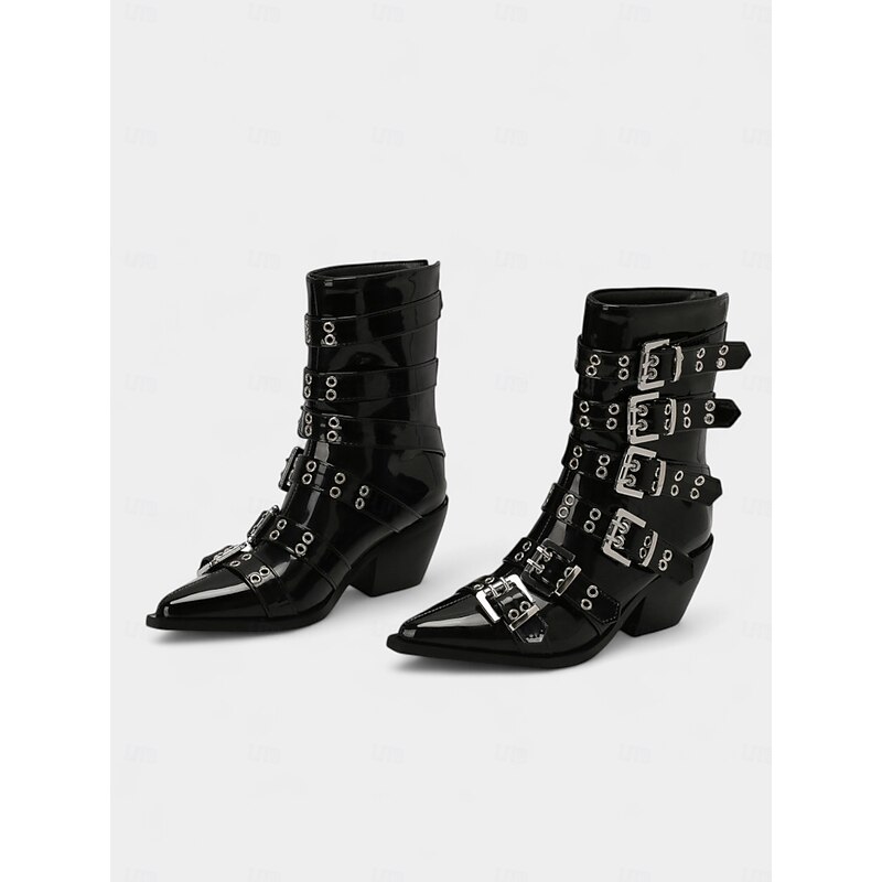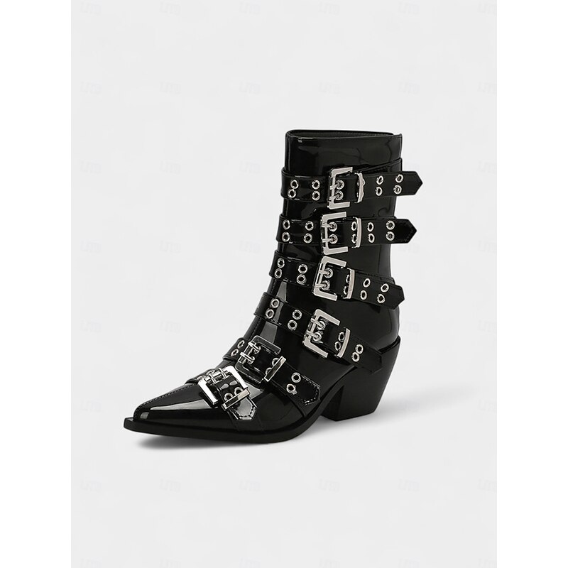 $79.99 - Women's Black Gothic Buckle Ankle Boots – Pointed Toe Patent Leather Combat Booties with Chunky Heels for Halloween Party, Streetwear and Night Out 2025. Shop for cheap Shoes For Women online? Buy at lightinthebox.com on sale today!