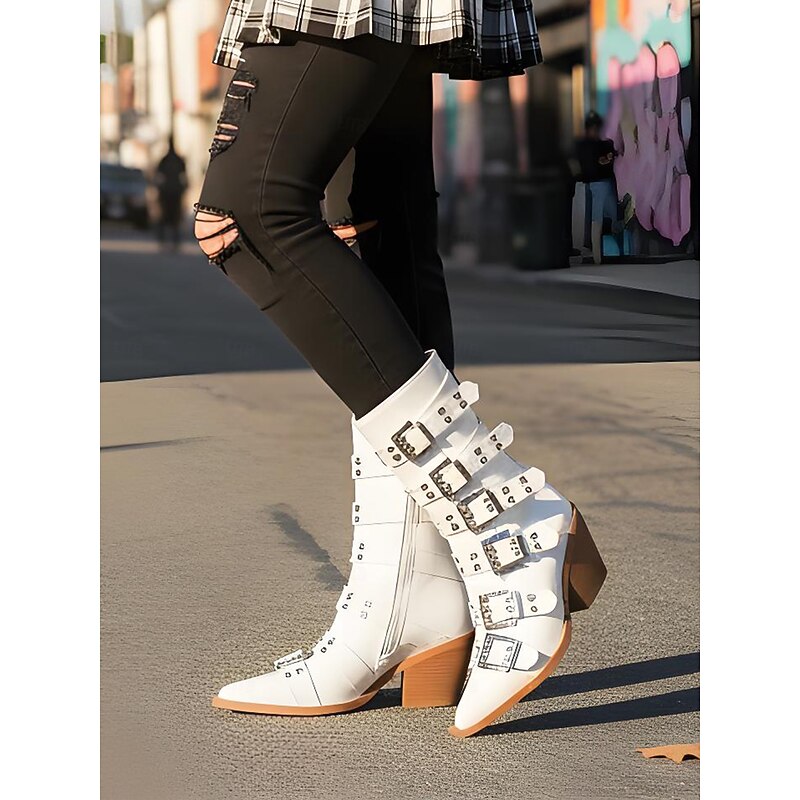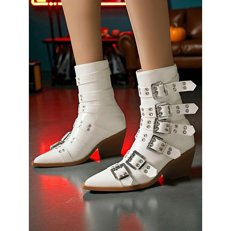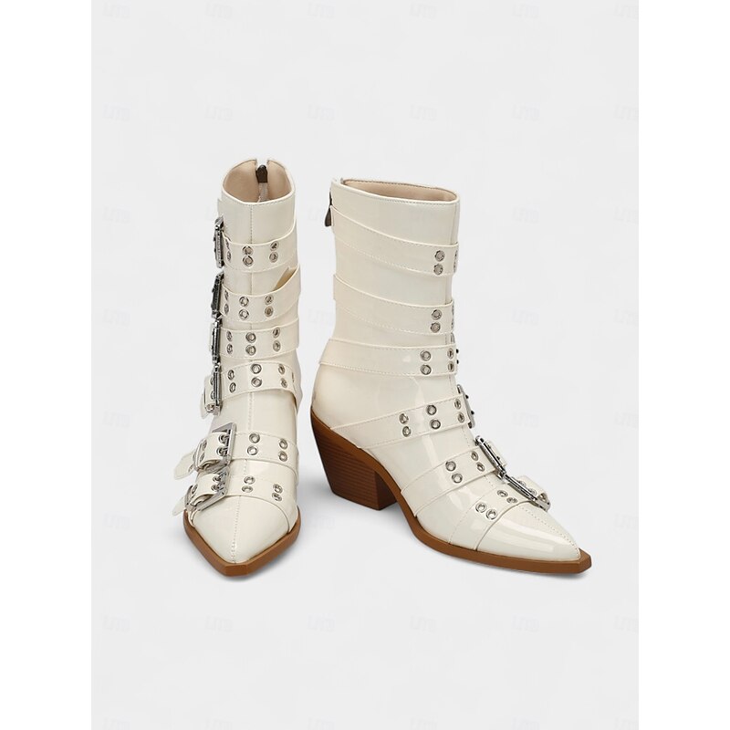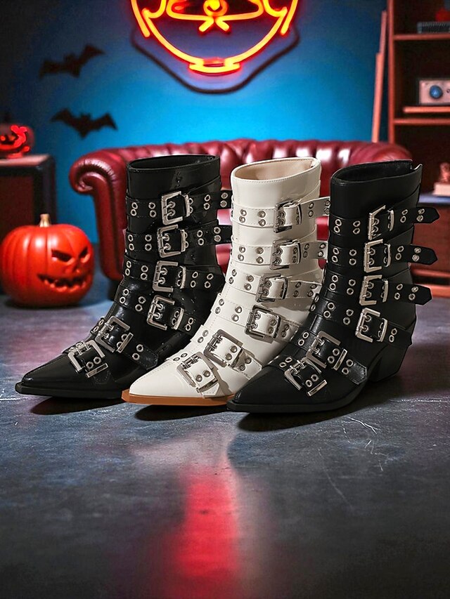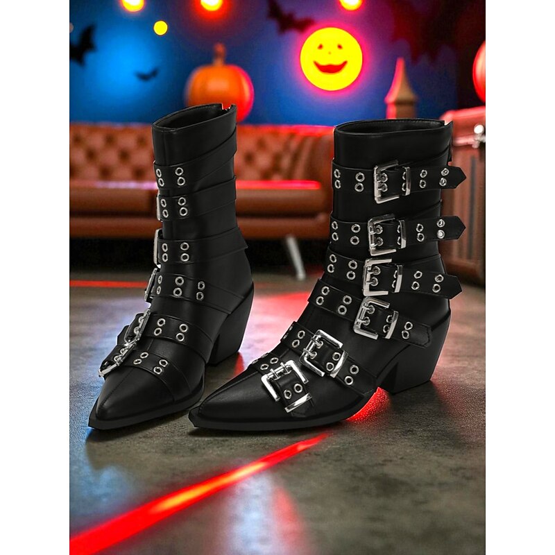 $79.99 - Women's Black Gothic Buckle Ankle Boots – Pointed Toe Patent Leather Combat Booties with Chunky Heels for Halloween Party, Streetwear and Night Out 2025. Shop for cheap Shoes For Women online? Buy at lightinthebox.com on sale today!