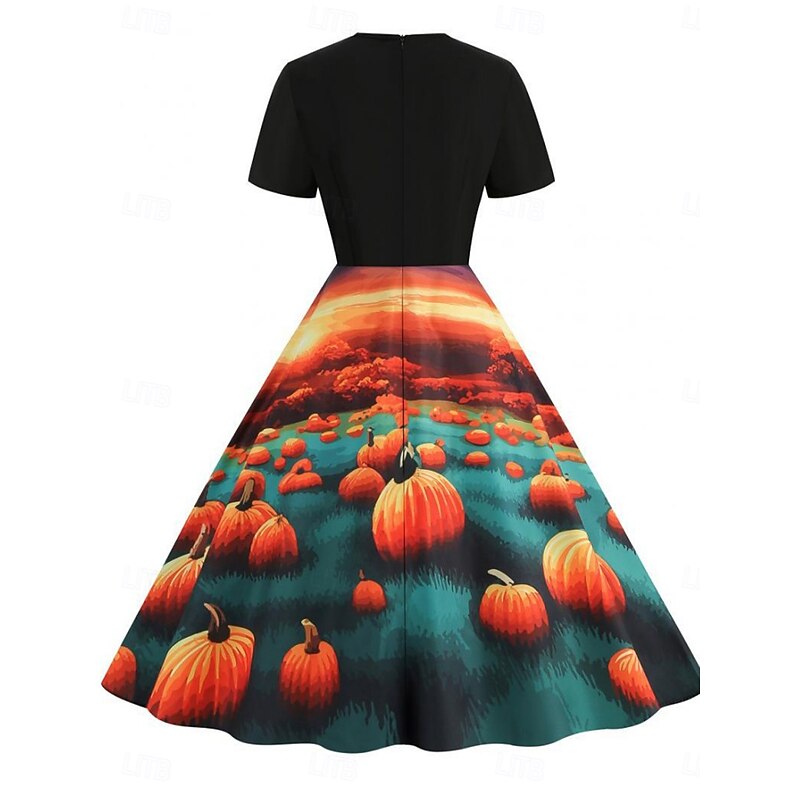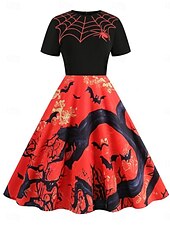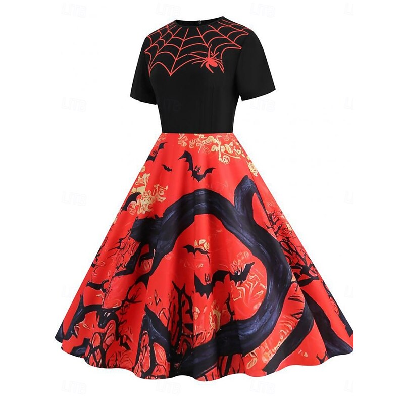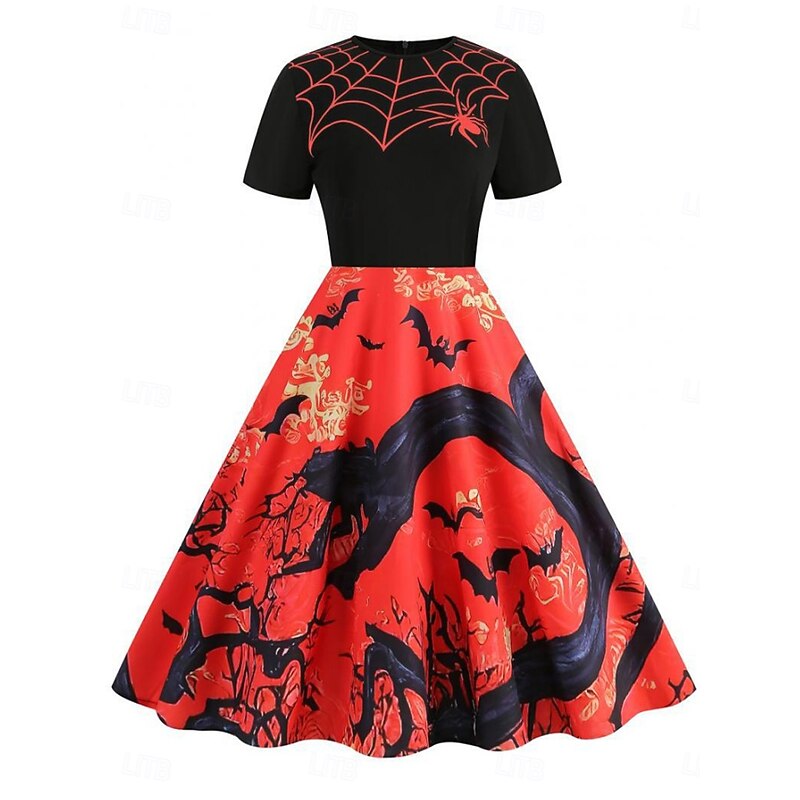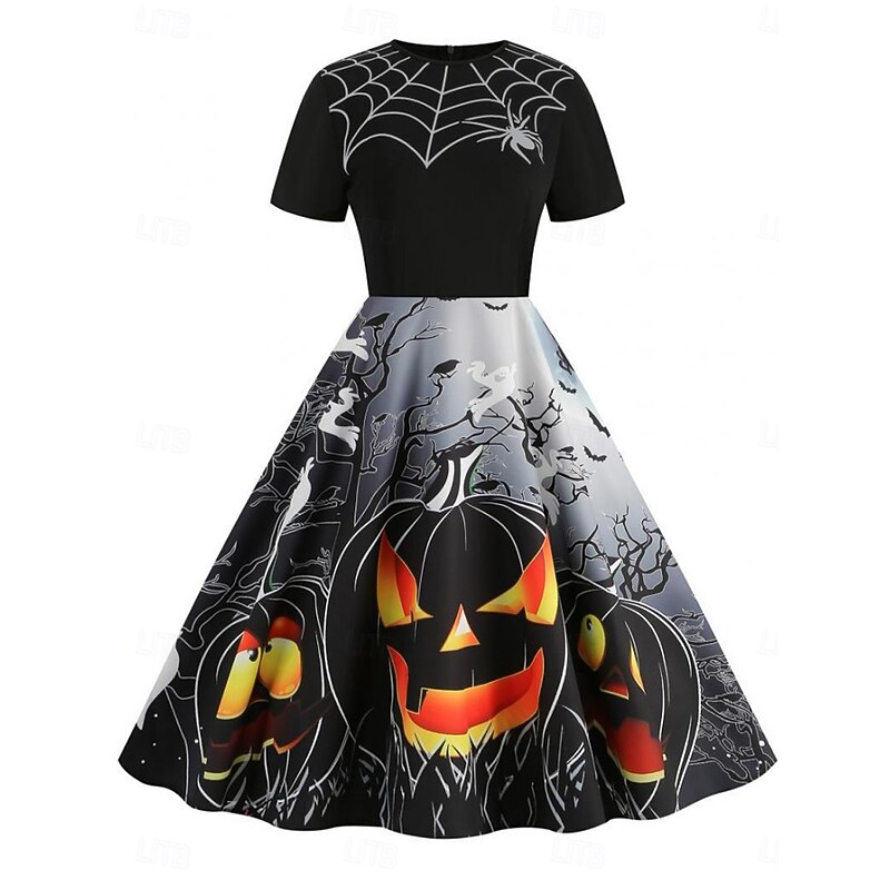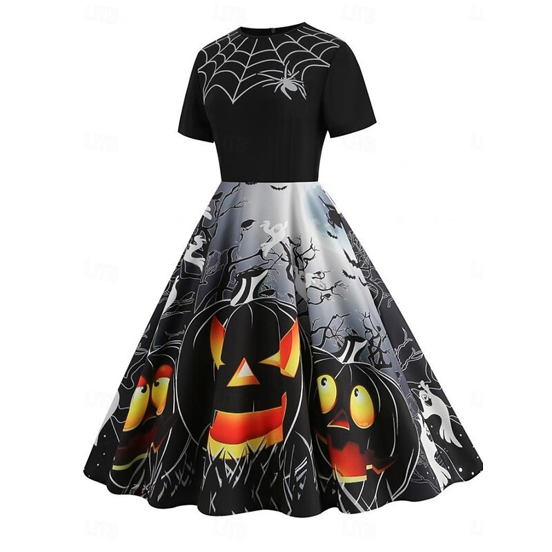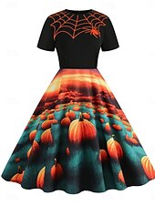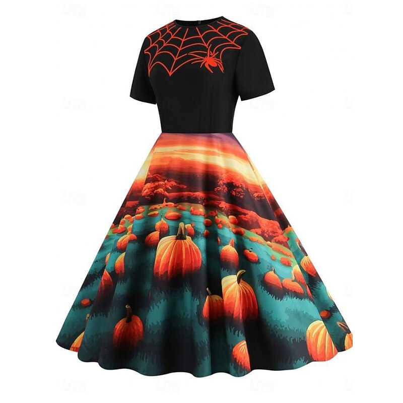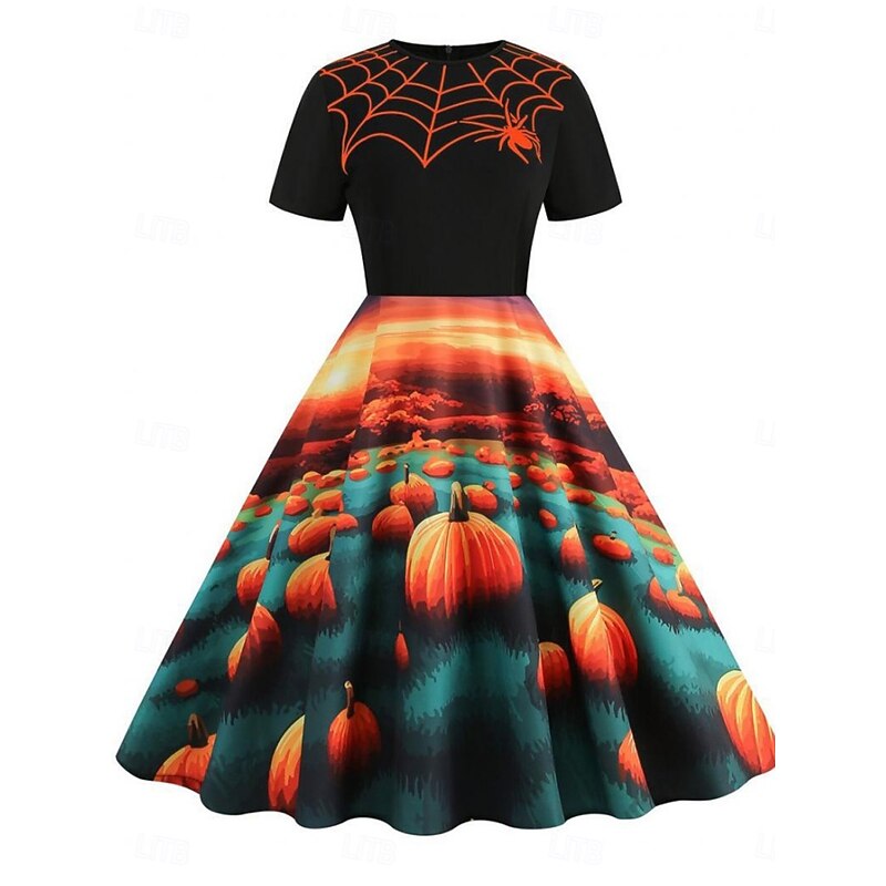 Why Choose Halloween Women's Spider Web Print Midi Dress A Line Dress Casual Daily Holiday Regular Fit Pumpkin Spider web Short Sleeve Crew Neck Black Blue Orange Apricot Summer Spring Fall?