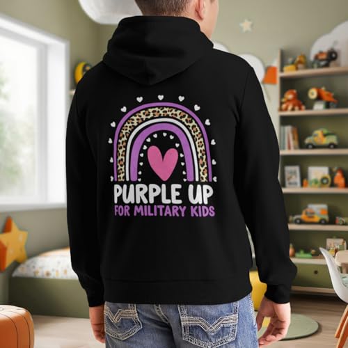 HOT ! Kids Purple Up for Military Kids Month Military Child Rainbow Boys Girls Lightweight Kangaroo Pocket Hoodies