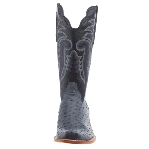 Men`s American Blue Jean Full Quill Ostrich 13In Navy Goat Top Boot 5