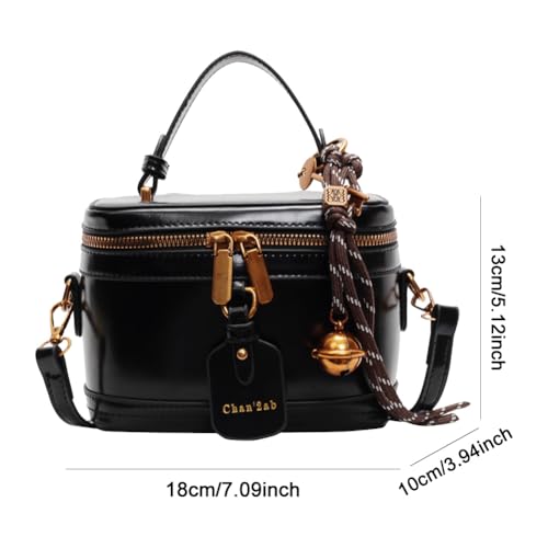 More information about Retro PU Leather Bucket Bag for Women Zipper Closure Small Crossbody Handbags with Pendant Top Handle Casual Shopper