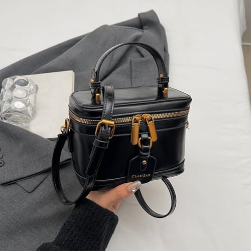 Retro PU Leather Bucket Bag for Women Zipper Closure Small Crossbody Handbags with Pendant Top Handle Casual Shopper 1