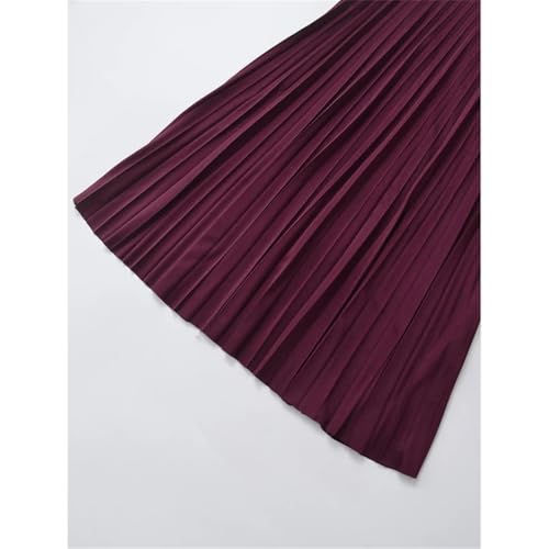 Women Wine Red High Waist Pleated Midi Skirt Office Wear Temperament Midi Skirt 6
