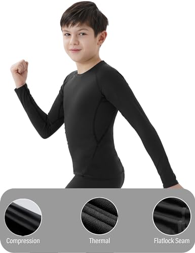 • ❤[Snug Fit for Optimal Performance] The compression fit of this boys long-sleeved base layer top provides a snug, second-skin feel that helps improve athletic performance by reducing muscle oscillation and providing targeted support.