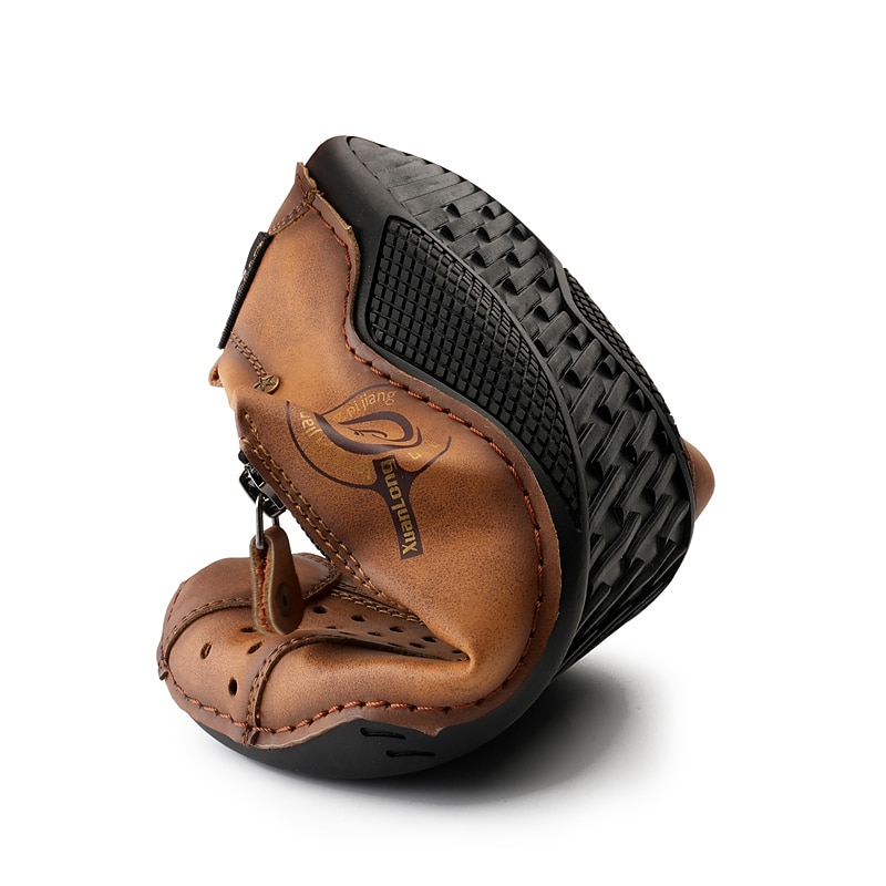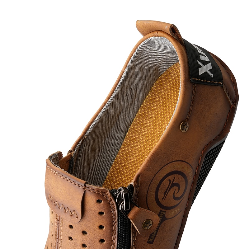 Men's Breathable Faux Leather Slip-On Casual Shoes – Vintage Style Loafers with Zipper & Perforated Design for Driving, Walking & Daily Wear 23
