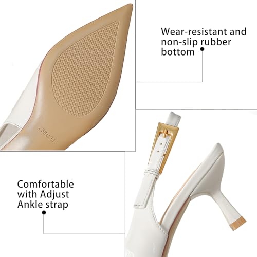 Women's Patent Pointed Toe Kitten Heel Slingback Pumps with Adjust Ankle strap Summer Fashion Closed Toe Elegant Low heel Dressy sandals for Wedding Bridal Party Evening 6