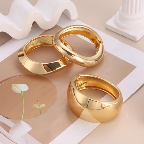 • Easy On, Easy Off: Slip these gold cuff bracelets right on and off your wrist. No clasps, no hassle. The chunky gold bracelet style makes a strong statement. Perfect chunky bracelets for women