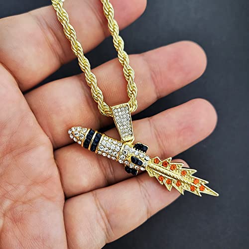 Gold Silver Plated Simulated Diamond Iced Spaceship Rocket Pendant w/ 4mm 24" Rope Chain Hip Hop Necklace Gift Set 1