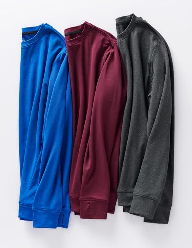 3-Pack Thermal Fleece Active Long Sleeve Shirts for Men, Athletic Crewneck Pullover Sweatshirts 3