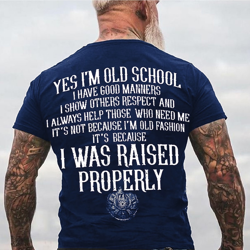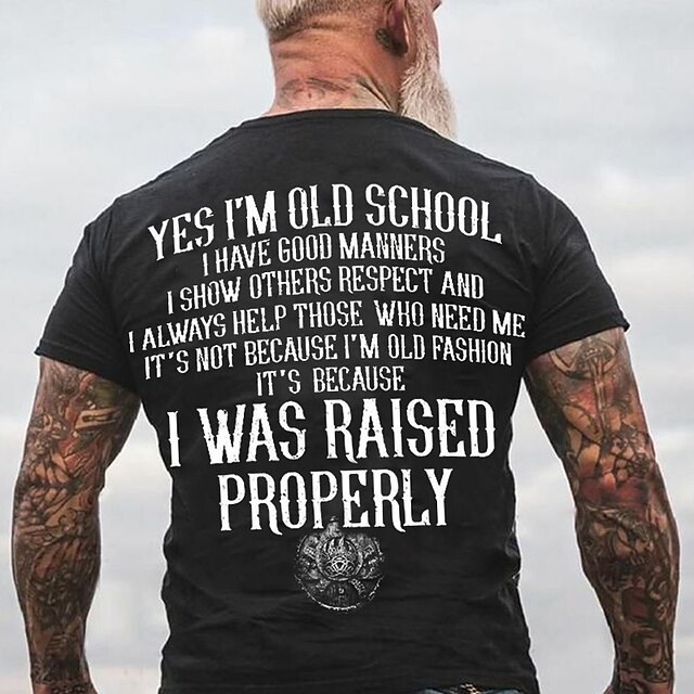 Men's Graphic T-Shirt: 'Raised Properly' Old School Quote, Short Sleeve, Family Values & Respect 11