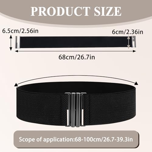 • 【Elastic Waistband Belts】Our black belt women's length is 68cm/26.7nch, the longest can be stretched to about 110cm/42.9inch, belt width is 6cm/2.36in, suitable for women in waist 68-100cm/26.7-39.3in.
