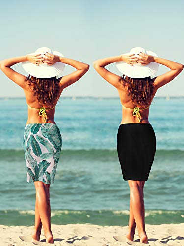 4 Pcs Sarongs Coverups for Women Swimsuit Wrap Skirt Beach Bikini Bottom Cover up Short Skirt Chiffon Cover Ups for Swimwear(Black, White, Yellow, Green Plantain Leaf) 6