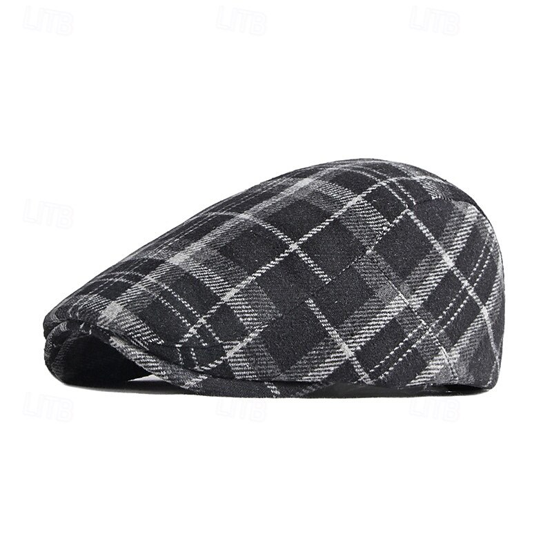 Highlights [Fabric] : Expertly crafted from breathable polyester material, this men’s cap ensures comfort and protection with its superior sunscreen qualities. The fabric is designed for durability and long-lasting wear, making it an ideal choice for various weather conditions across all seasons. [Cut] : Featuring a sleek and modern flat cap style, this cap offers a snug, adjustable fit perfect for a personalized wear experience. Its streamlined silhouette adds a sophisticated touch, suitable for enhancing both casual and semi-formal ensembles. [Design Highlights] : The cap showcases a classic plaid pattern in subtle shades of black, beige, and purple, adding a fashionable element to your outfit. It seamlessly blends traditional design with contemporary materials, making it a standout accessory for those with an eye for detail. [Occasions] : Ideal for daily wear, this versatile cap is perfect for street outings and casual gatherings, seamlessly complementing a variety of settings. Its stylish design caters to a wide range of occasions, ensuring both practicality and flair. [Size] : Available in one adjustable size, this cap is designed to comfortably fit a variety of head sizes, providing versatility and ease of wear for most men.