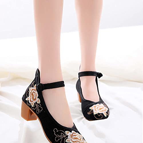JOEupin Women Chinese Embroidered Flower Flat Bridal Mary Jane Ballet Shoes 5