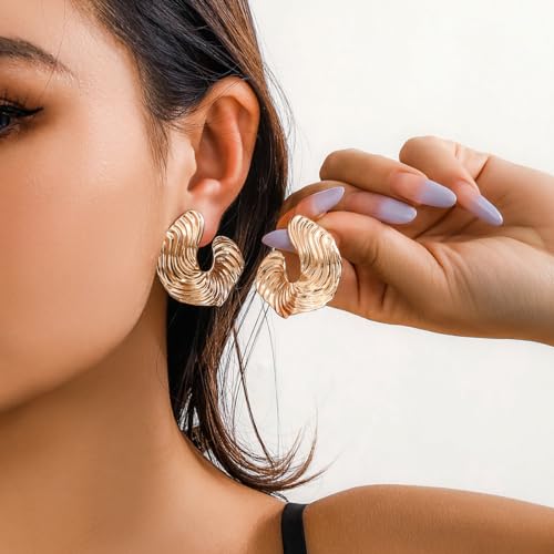 Chunky Gold & Silver Spiral Earrings - Trendy Large Geometric Fashion Statement Earrings 7