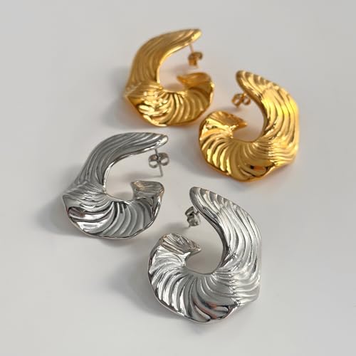 HOT ! Chunky Gold & Silver Spiral Earrings - Trendy Large Geometric Fashion Statement Earrings