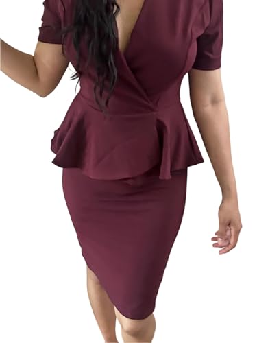• Fur description: This chic summer work dress features a flirty V-neckline and peplum waist to hide tummy flesh and present a beautiful waistline.It gives a fresh and dry look while being sexy and flirty.
