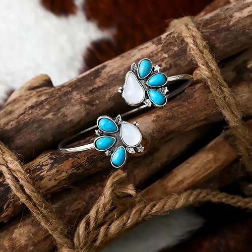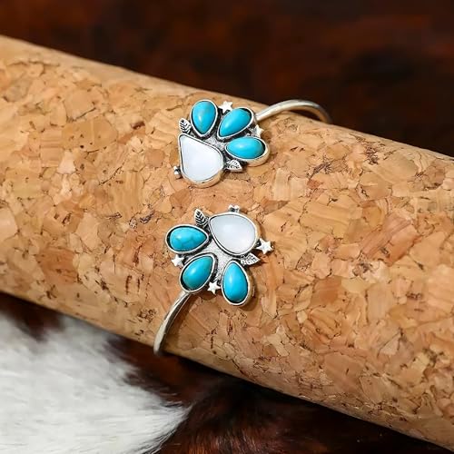 Long tiantian Turquoise Bracelet for Women Western Boho Bracelet Cowgirl Jewelry Navajo Pearl Cuff Trendy Country Concert Accessory 2025 6