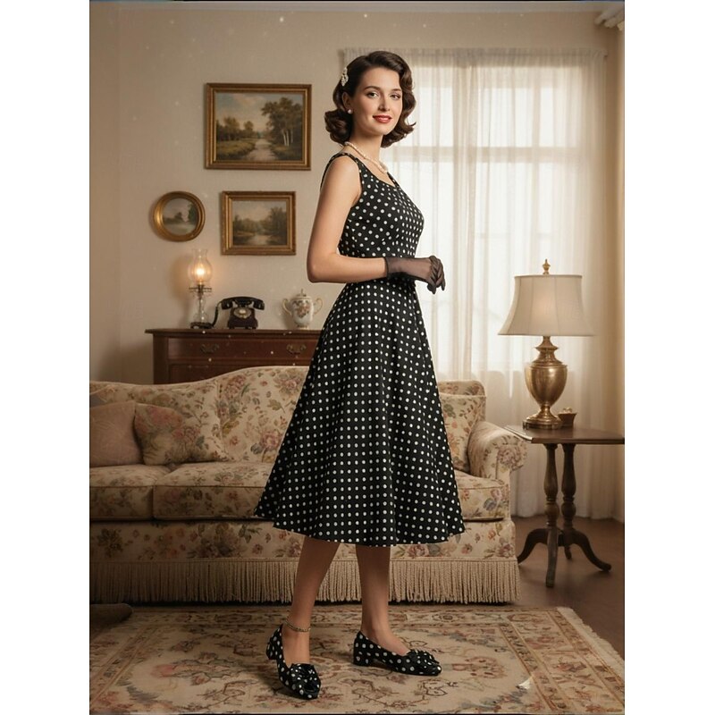 More information about Women's Black and White Polka Dot Low Heel Pumps with Bow Decoration – 1950s Elegant Retro Style Shoes for Casual and Formal Events