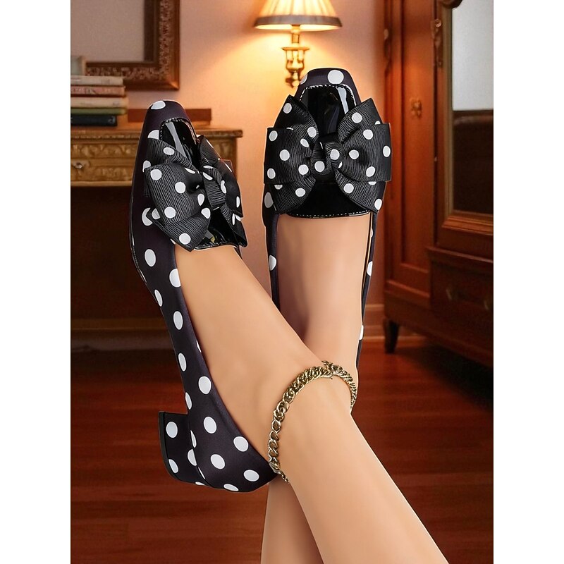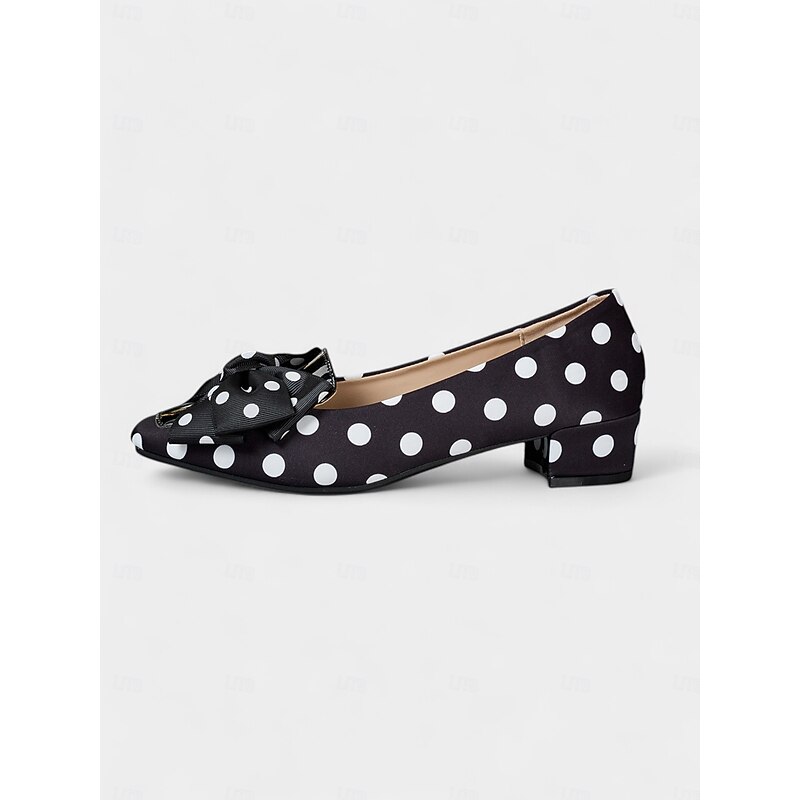 Women's Black and White Polka Dot Low Heel Pumps with Bow Decoration – 1950s Elegant Retro Style Shoes for Casual and Formal Events 1
