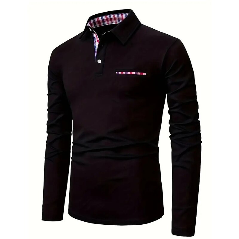 More information about Men's Button Up Polos Polo Shirt Casual Sports Lapel Long Sleeve Fashion Basic Plain Patchwork Button Summer Regular Fit Black Red Navy Blue Button Up Polos