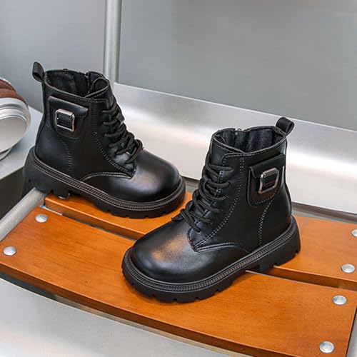 Kids Winter Fleece Warm Combat Boots Girl Thick Heel Ankle Boots Casual Lace Up Snow Booties Non-Slip Outdoor Shoes 7