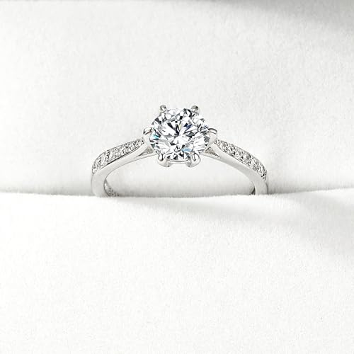 VOLUKA 925 Sterling Silver Simulated Dimond CZ 1CT Cubic Zirconia Rings for Women Classic Eternity Band Rings Promise Wedding Statement Engagement Rings 6