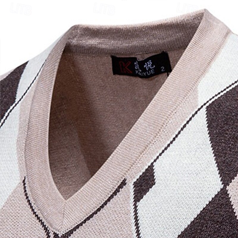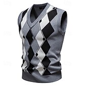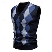 More information about Men's Sweater Sweater Vest Pullover Sweater Jumper Ribbed Knit Regular Tops Knitted Slim Fit Argyle V Neck Knitwear Contemporary Casual Daily Wear Clothing Apparel Winter Spring & Fall Navy Blue Blue