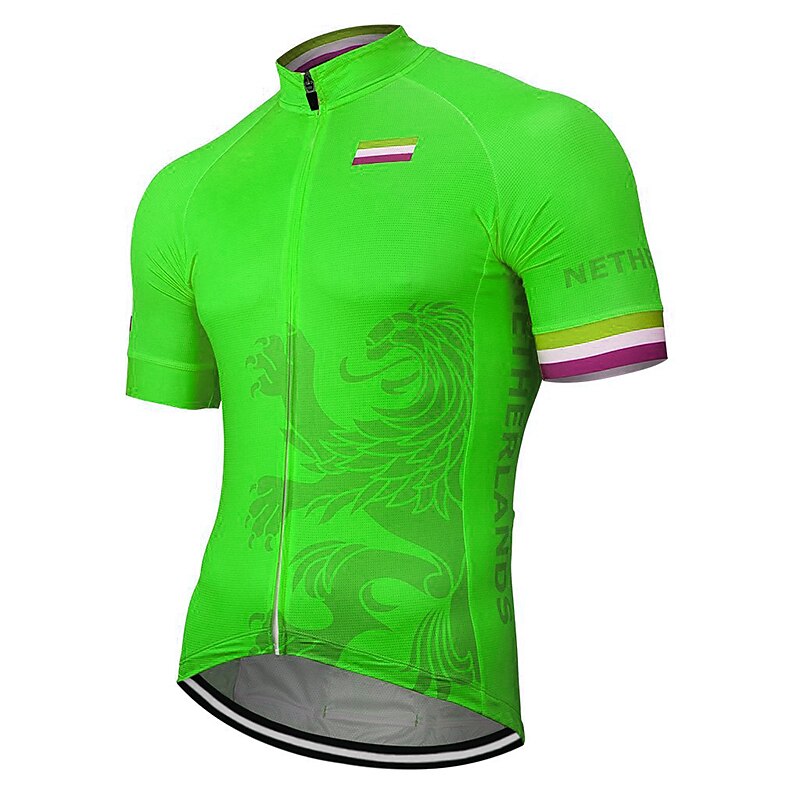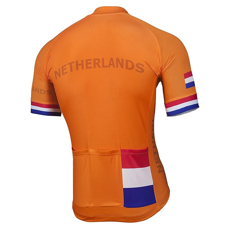 Highlights - Keep your essentials close with 3 classic back pockets on the men's cycling shirts. - Stay dry and comfortable during your ride with quick-dry fabric and moisture management. - No slipping or sliding while pedaling, thanks to the anti-slip silicone hem and high elastic tricot fabric cuff. - Be visible and stay safe in dark conditions with the added reflective strip. - Perfect for both mountain bike (MTB) and road bike cycling disciplines. - Features stretchy elasticity, quick-dry function, and UV resistance. - Show off your national pride with the Netherlands flag pattern.