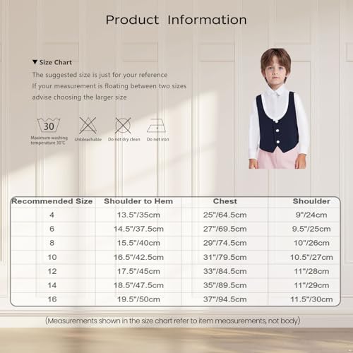 renvena Kids Vest for Boys 3 Button Formal Suit Vest U Neck Sleeveless Color Block Dress Waistcoat 7