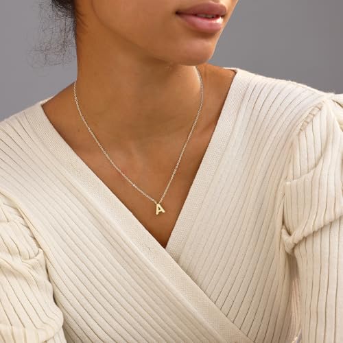 Initial Necklaces for Women, 14k Gold Plated Dainty Gold Letter Necklace Tiny Initial Pendant Necklace Cute Letter Name Choker Necklaces for Women Simple Gold Jewelry for Women Gifts 5