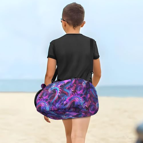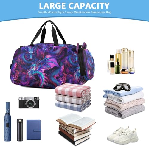 Cyberblue Purple Dragon Duffel Gym Bags with Shoes Compartment Lightweight Travel Duffel with Adjustable Strap for School Practice, Sports, Travel 6