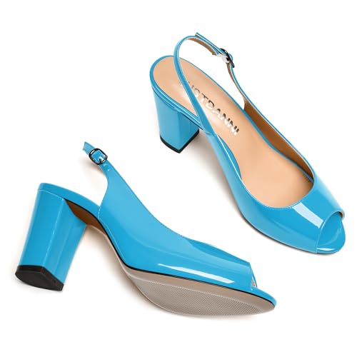 JUSTDANNI Womens Slingback Casual Patent Buckle Peep Toe Comfortbale Party Block High Heel Pumps Shoes 3.3 Inch 7