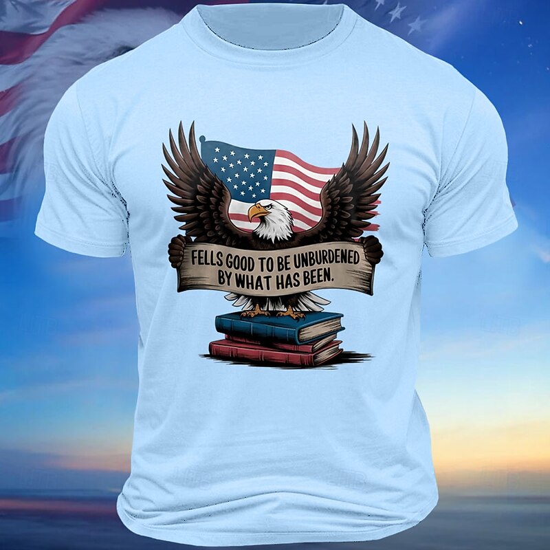 Men's Short Sleeve Patriotic American Eagle Graphic T-Shirt with 'Feels Good to Be Unburdened' Inspirational Quote 12